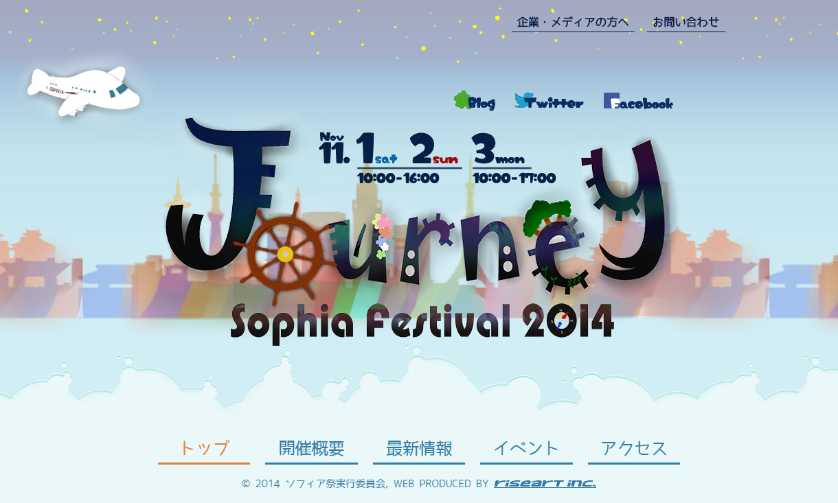 本年度のソフィア祭のテーマである「JOURNEY」をイメージし、各部にアニメーションエフェクト等を積極的に盛り込みつつも、最低限のユーザビリティを担保できるようデザインさせていただきました。